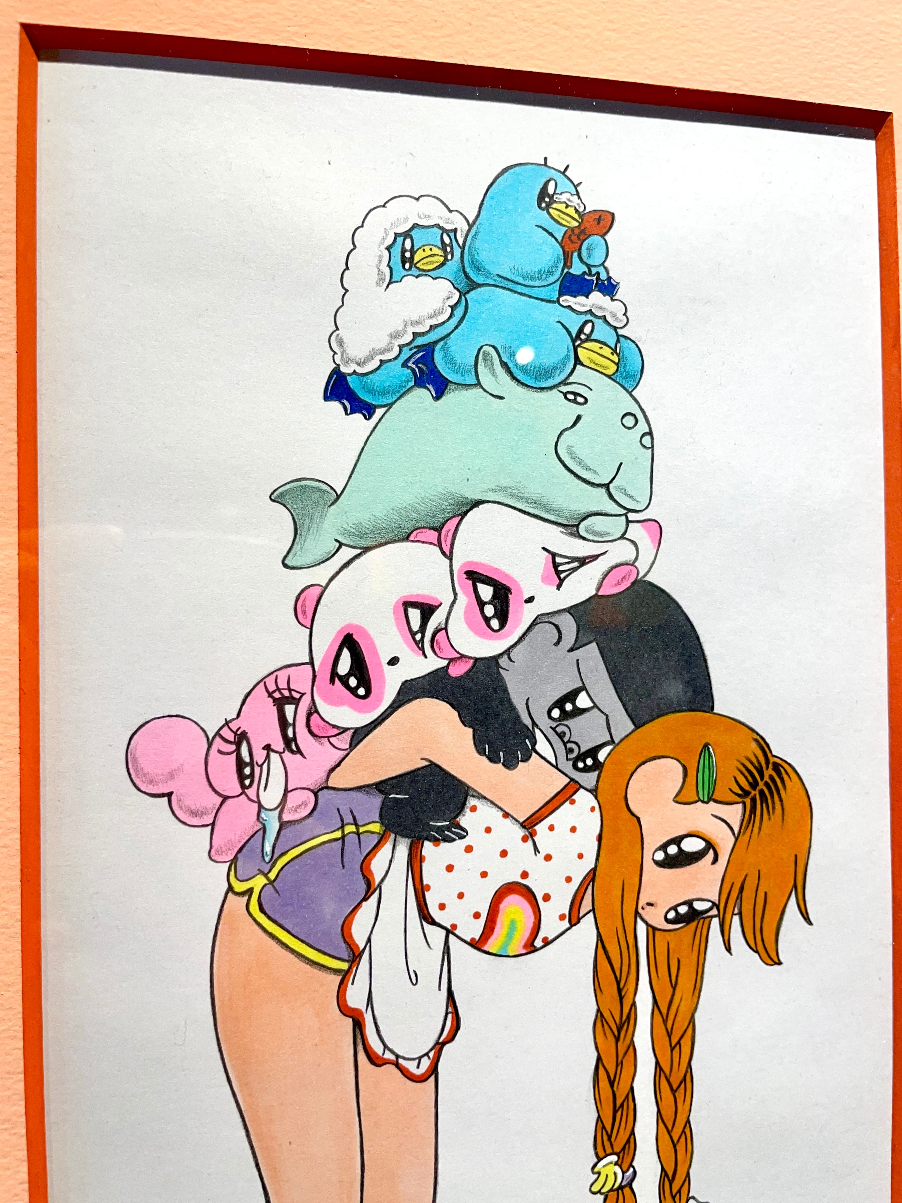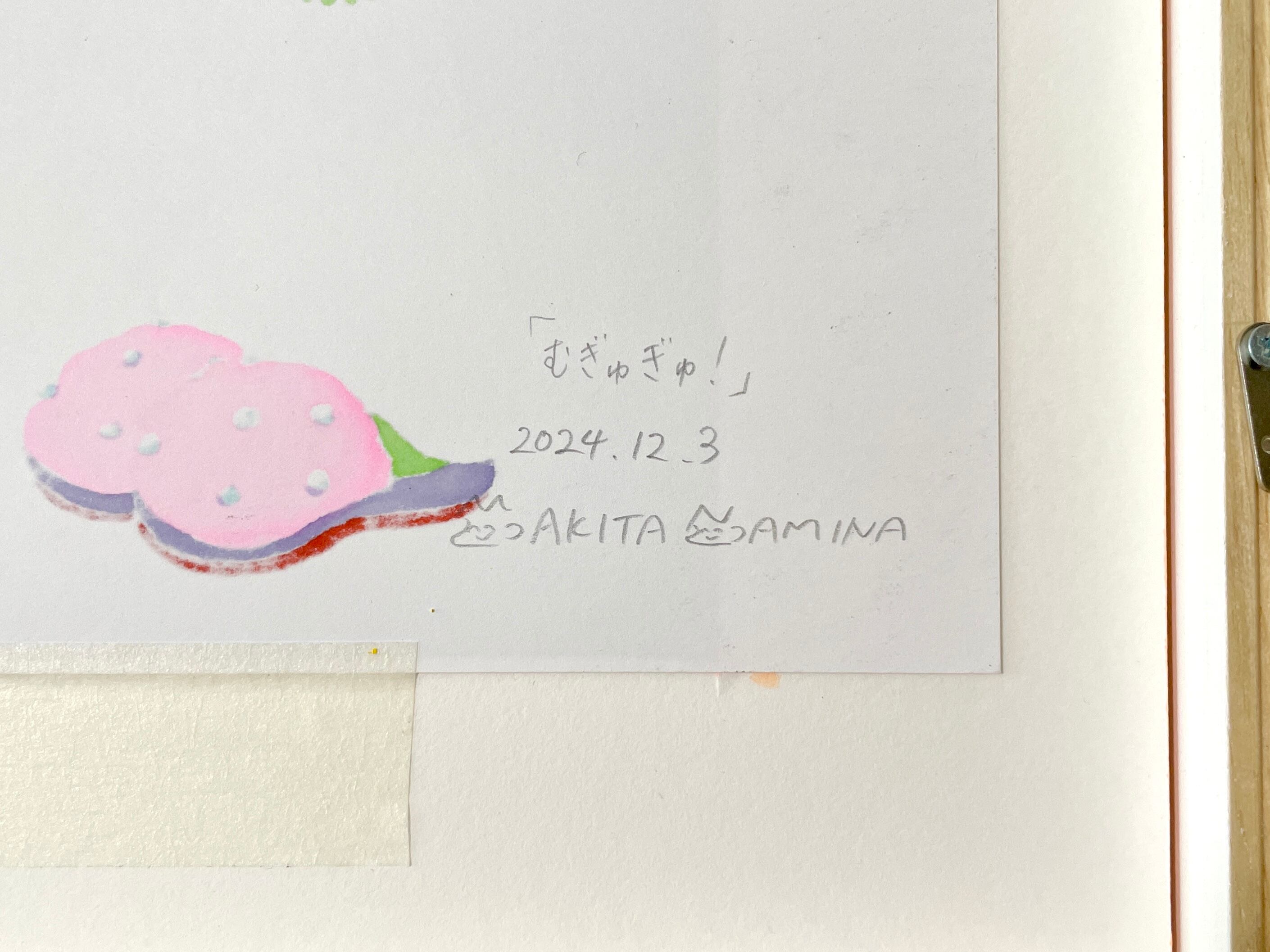 素材:上質紙にコピック、鉛筆/マットにアクリル絵具/木製額縁、アクリル板、板段ボール(厚み調整用)、紐