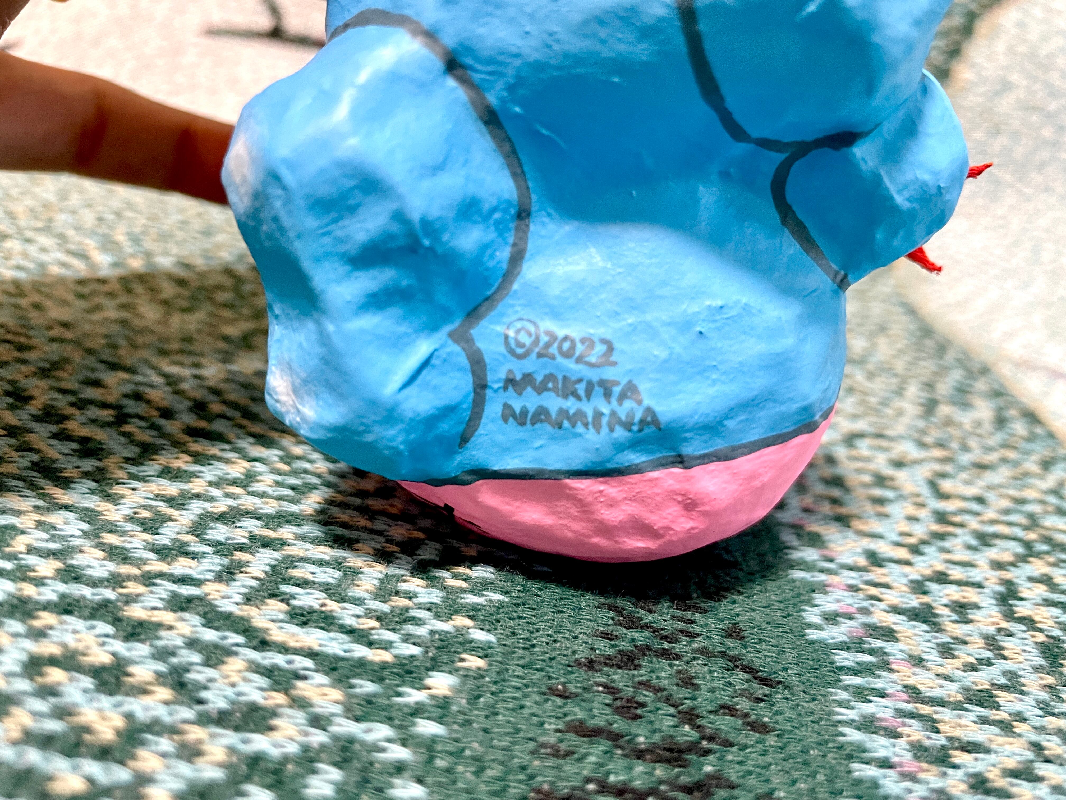 仕様:半紙/新聞紙/紙粘土/鈴/アクリル絵具/グログランリボン