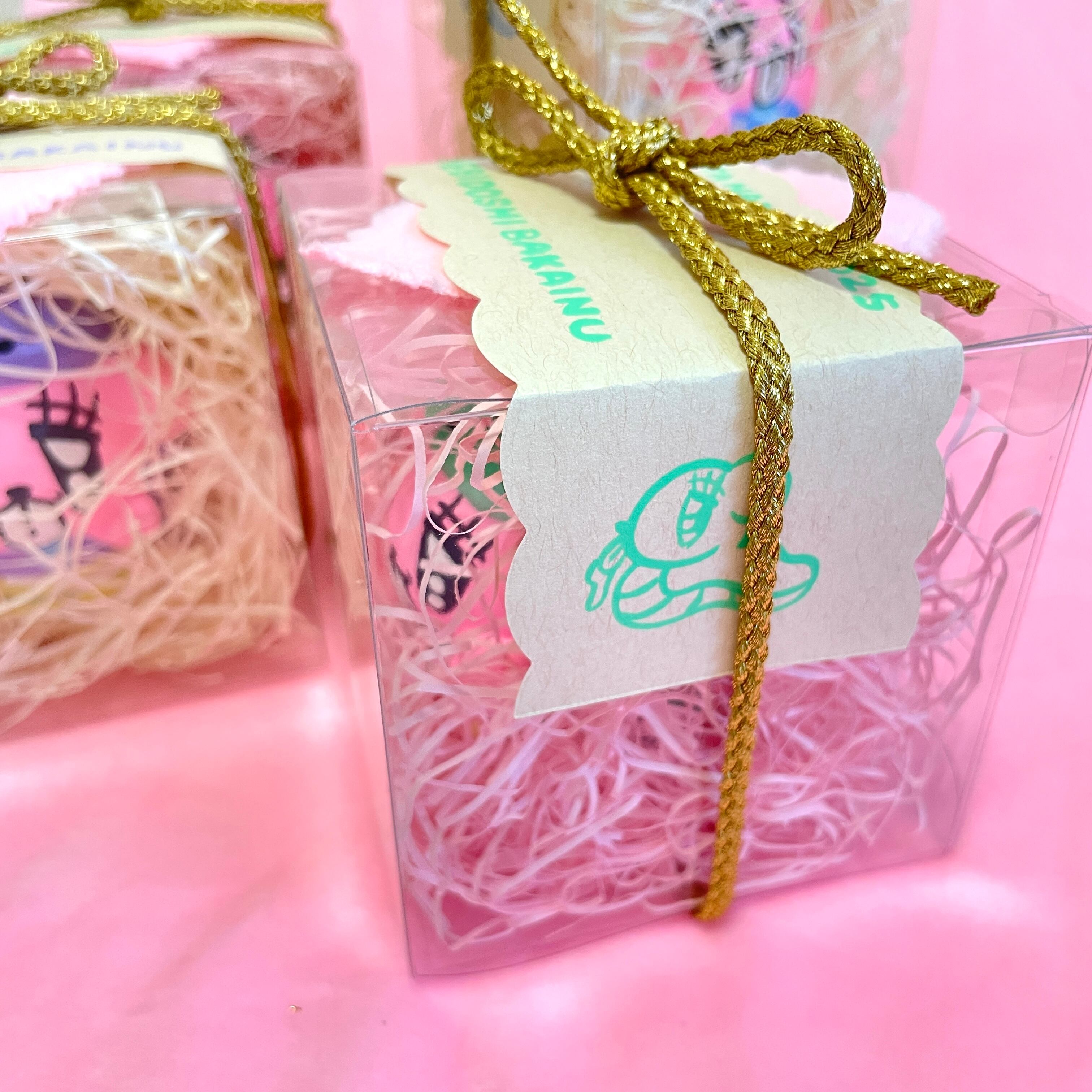 パッケージ:クリスタルボックス/紙/アクリル絵具/布/紐